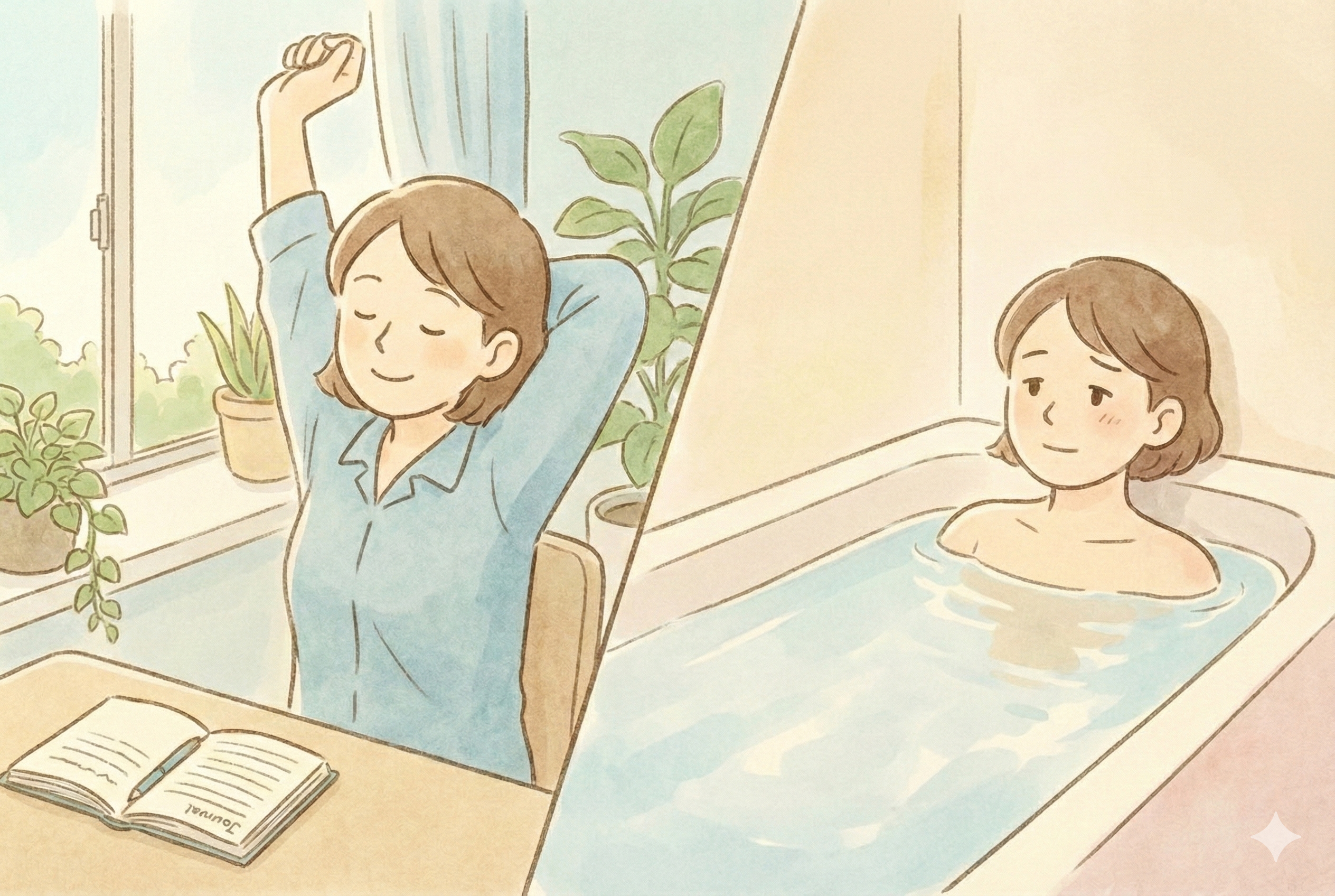 • “おつかれさま”の気持ちを自分に向ける: 今日できたことをひとつ思い出すと、安心感が広がる